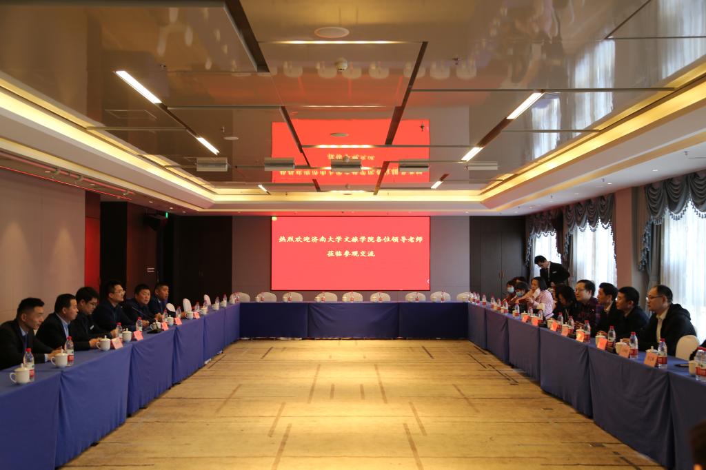 文旅学院党委书记孟德洋,简要介绍了学校和学院发展情况,对学院各专业建设情况进行了简单介绍。孟德洋指出,学院始终坚持党建引领,充分发挥特色学科专业优势,努力提升人才培养质量,积极对接地方,增强社会服务职能,积极推进“对接产业、产教融合、校企合作、协同创新”,希望双方在人才需求、实习实践基地、企业员工继续教育、员工管理培训等方面进行深入合作。