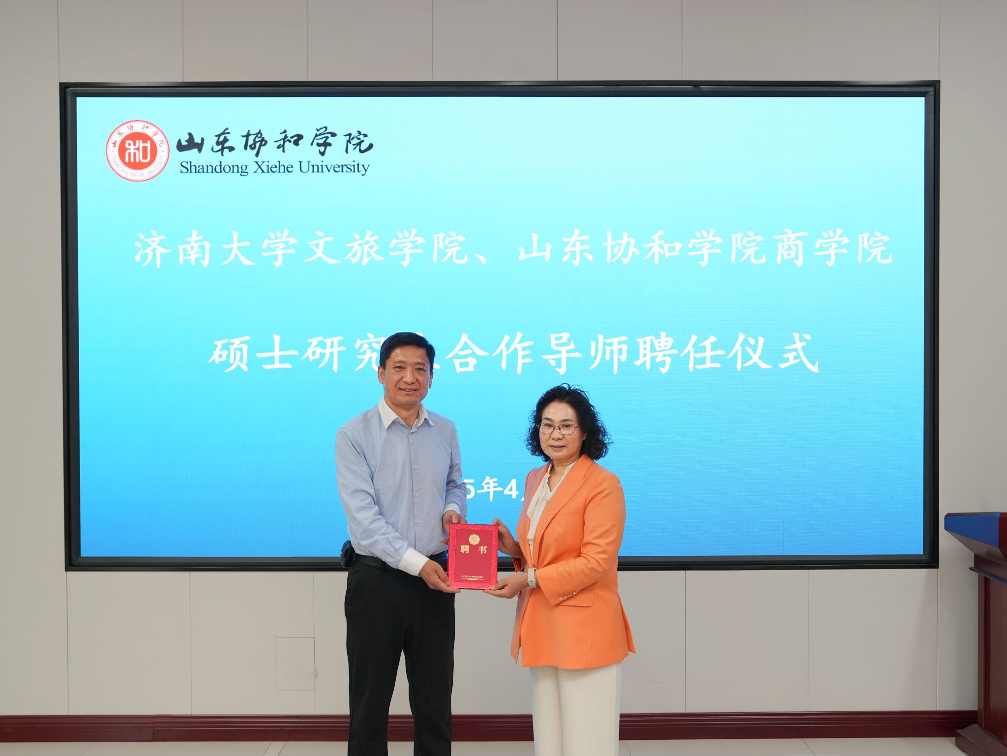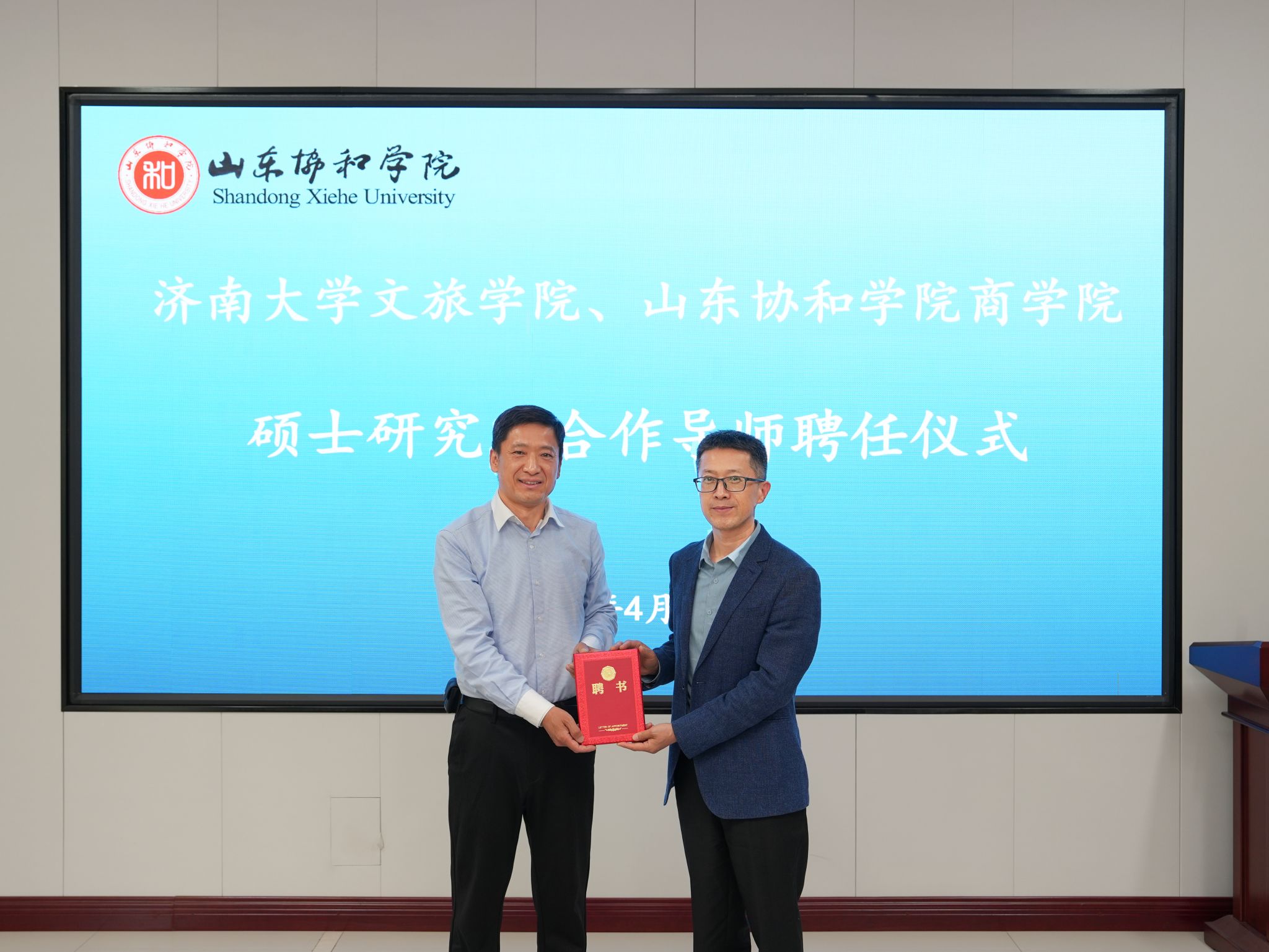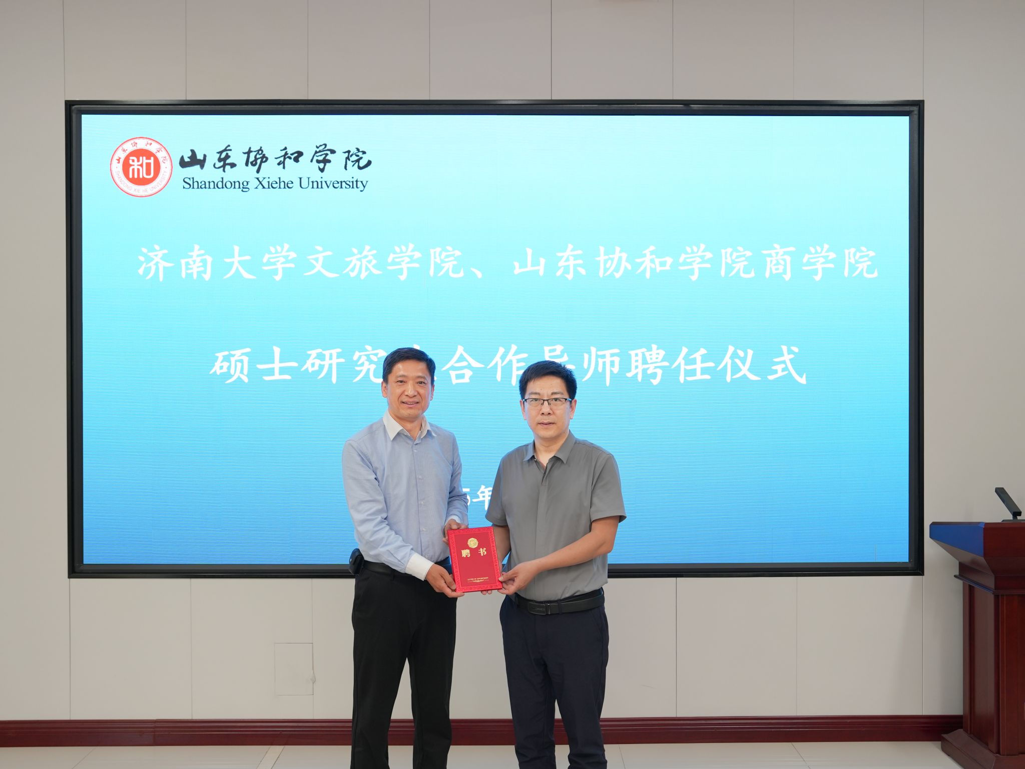 研究生院聘任的山东协和学院的3位MTA兼职校外指导教师(合作导师)颁发了聘书,标志着双方在人才培养和学术研究方面的合作进入了一个新的阶段。