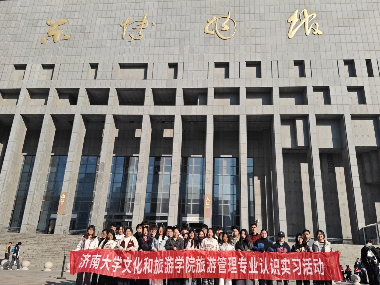 在济南绿地美利亚酒店和鲁能希尔顿酒店,学生通过实地参观、交流座谈与现场模拟等途径,学习了酒店的欧美性爱、服务设施配置、各岗位的工作内容及服务要点等。在山东博物馆,学生现场分组模拟导游讲解,领略了山东的历史文化和地域特色,对文创商品设计与开发、业态布局及展品数字化展示进行了全面了解。在大明湖景区,学生对景区旅游资源的分布、功能分区与商业设施进行了深入考察,并分组开展了关于大明湖景区新业态与旅游新市场的问卷调研工作。