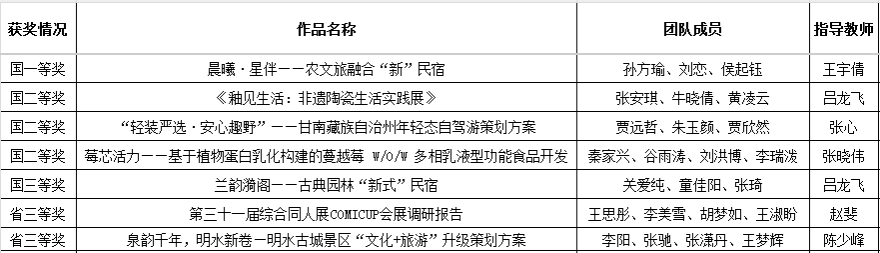 参赛团队凭借扎实的专业基础、创新的策划理念和良好的团队协作能力,在与全国多所高校的激烈角逐中脱颖而出,共斩获国家级一等奖1项、二等奖3项、三等奖1项;省级三等奖2项,充分彰显了学院在应用型人才培养和创新创业教育方面取得的显著成效。