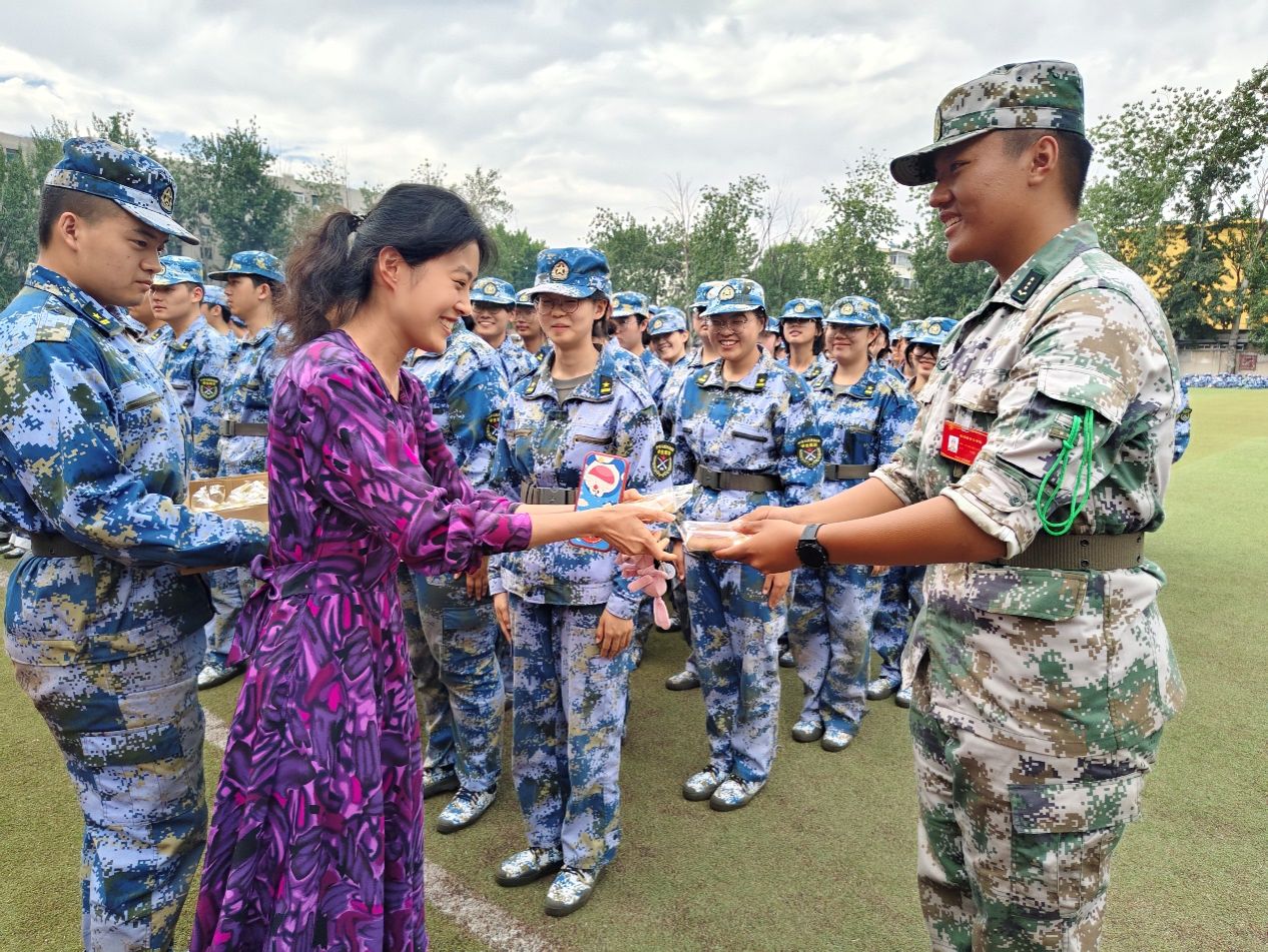 随后,2024级新生展示了多日的军训训练成果,老师们对同学们在军训中展现出的坚韧不拔、积极向上的精神风貌给予了高度评价。信苏珊代表学院向全体新生致以节日的问候,并希望同学们能够借此机会,加深彼此间的了解与友谊,共同构建一个温馨、和谐的校园文化氛围。她鼓励新生们将军训中学到的纪律性、团队精神带入到日后的学习生活中,争做有理想、敢担当、能吃苦、肯奋斗的新时代好青年。同学们纷纷表示,虽然远离家乡,但在学院的关怀和同学们的陪伴下,这个中秋格外温馨难忘。他们承诺,将不负韶华,努力学习,不辜负老师、家长的期望。