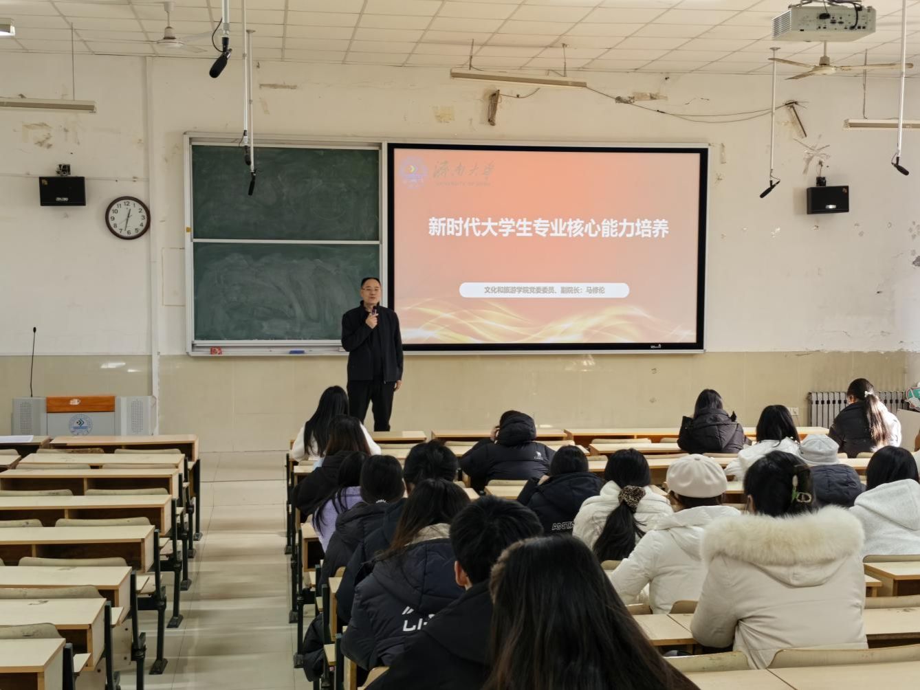 学院院长刘磊讲授了题为“让中华优秀传统文化 为青春插上腾飞的翅膀”党课。主要围绕中华优秀传统文化助力青年成长展开,阐释了传统文化与青春成长的内涵,结合党的二十届四中全会关于激发文化创新活力、建设文化强国的精神,与校园内传统文化的传承创新,提升大学生综合素质,为青年塑造健全人格、拓展思维视野、激发创新精神,为青春腾飞赋能。
