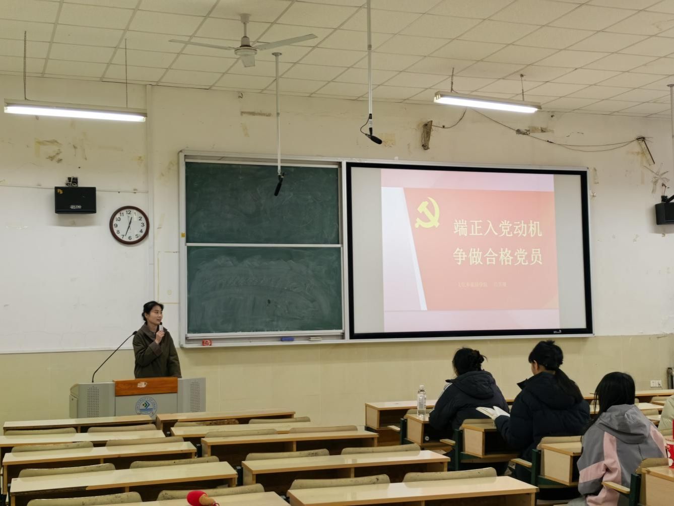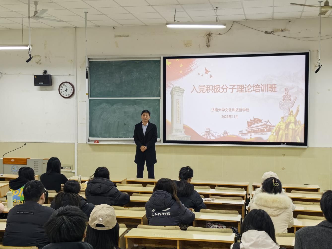 在学院阶梯教室举办入党积极分子理论培训班,共33名入党积极分子参加培训。