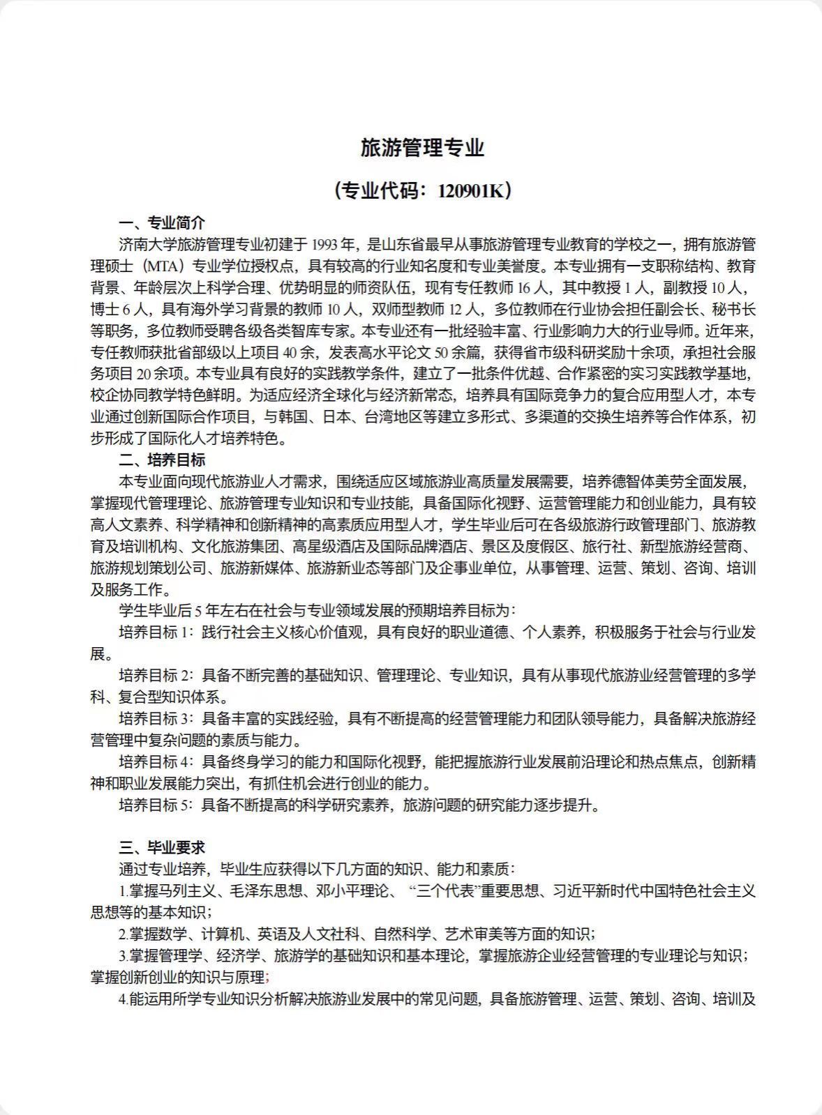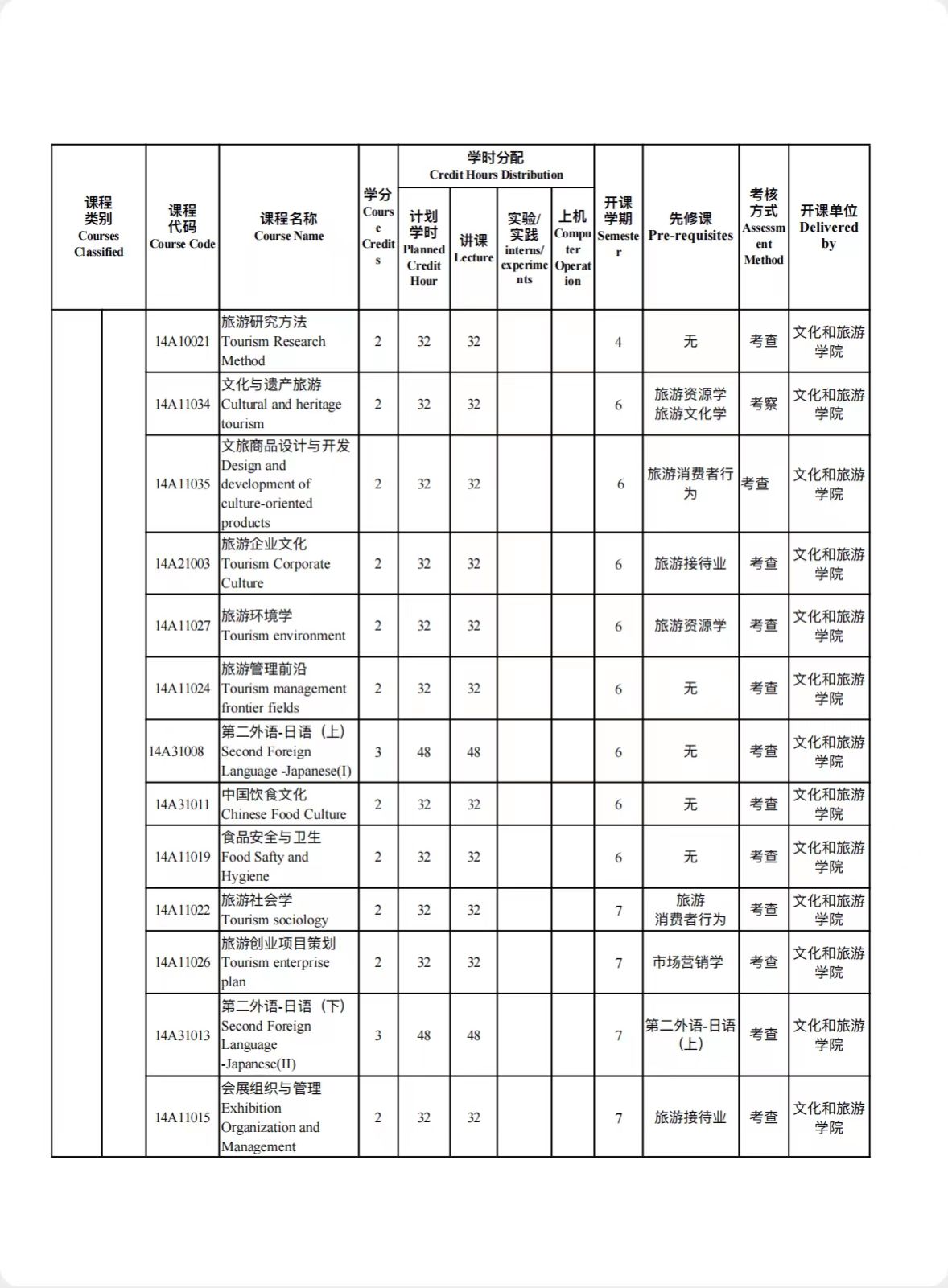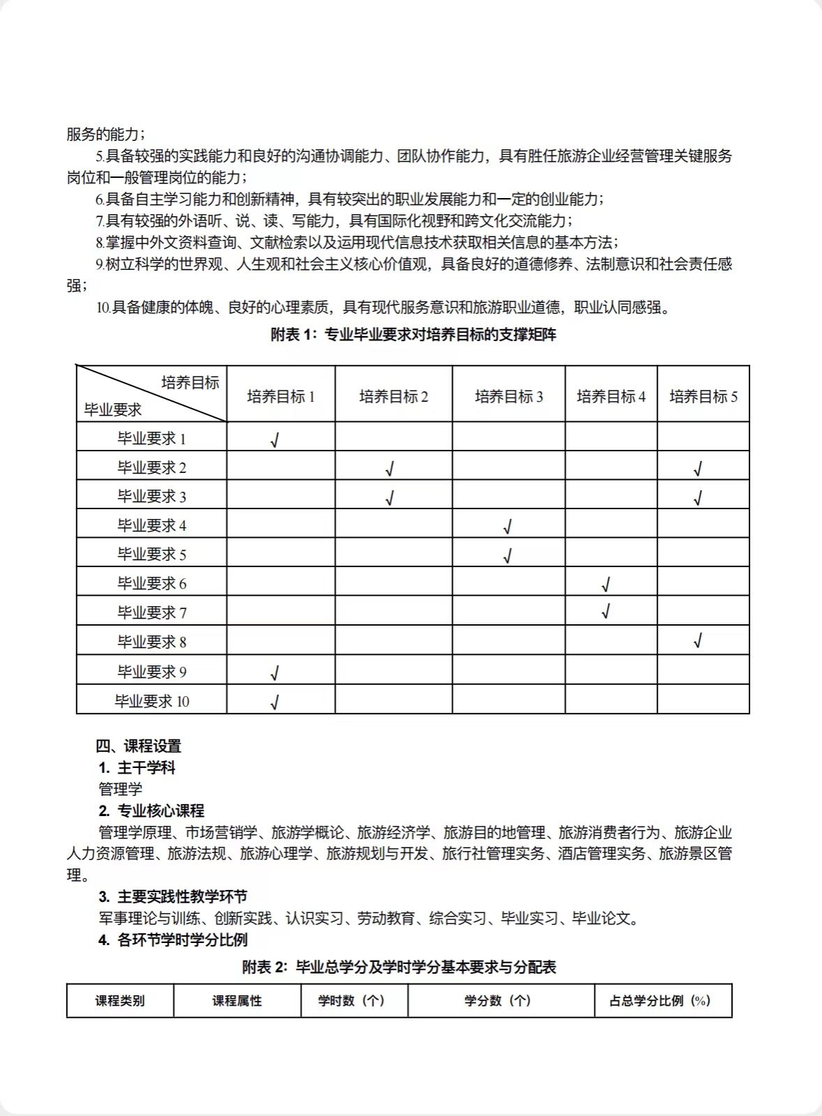 旅游管理培养方案