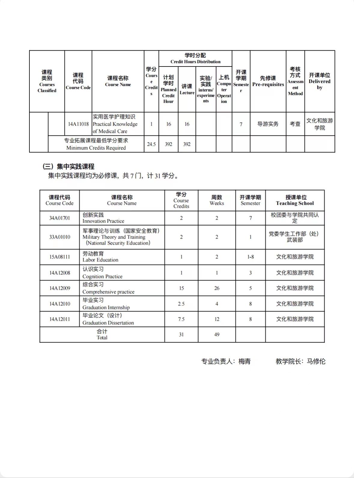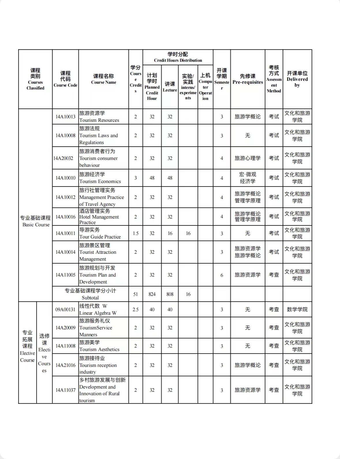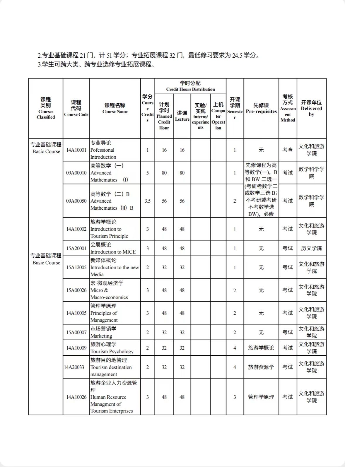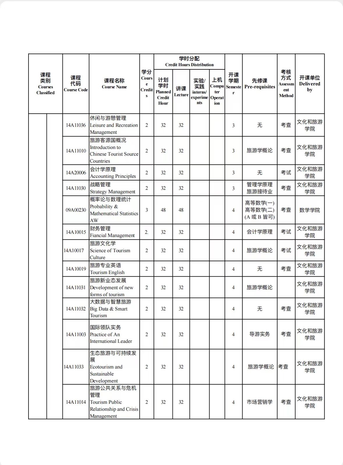 旅游管理培养方案