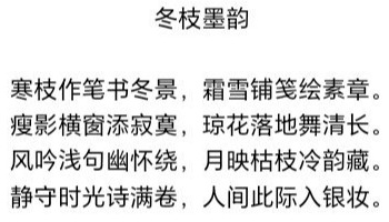 参赛者们就“冬韵诗章:冬日诗歌创作”为主题创作了一篇篇富有冬日氛围感的现代诗歌。在诗中参赛者不仅仅倾诉了对冬的感悟,引发读者共鸣。更展现了参赛者挖掘冬的新意,突破传统,探索现代诗歌多元形式与风格的热情。显现了“当寒风奏响冬的序曲,霜雪为大地披纱,冬携宁静与深邃悄临。它无春之繁花、夏之热烈、秋之硕果,却有寒梅傲雪、炉火温情与冰雪空灵。”的景象。