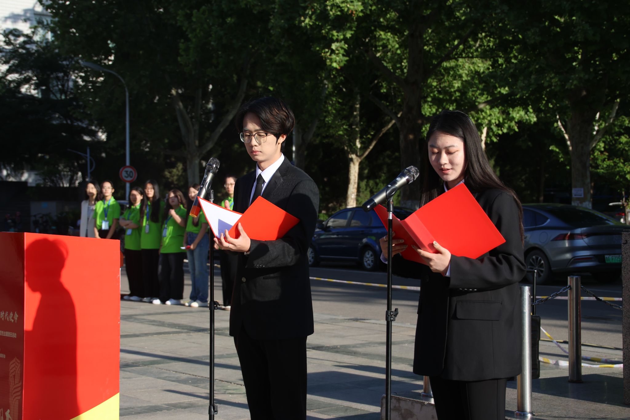 团委书记胡春毅、团委副书记兼创新创业学院院长纪祥、团委副书记张振宇,以及相关学院负责人出席活动。学生团干部和200余名师生代表齐聚于此,共同开启了一场意义非凡的青春思政课。