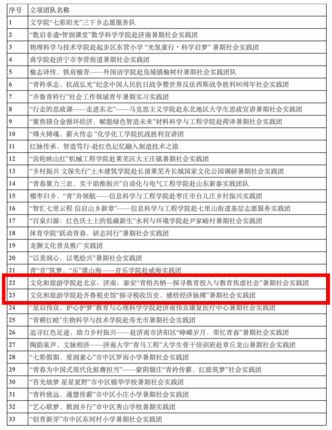 赴北京、济南、泰安“青梧共栖-探寻教育投入与教育焦虑社会”暑期社会实践团、赴齐鲁税史馆“探寻税收历史,感悟经济脉搏”暑期社会实践团从众多申报团队中脱颖而出,成功获得校级重点团队立项。