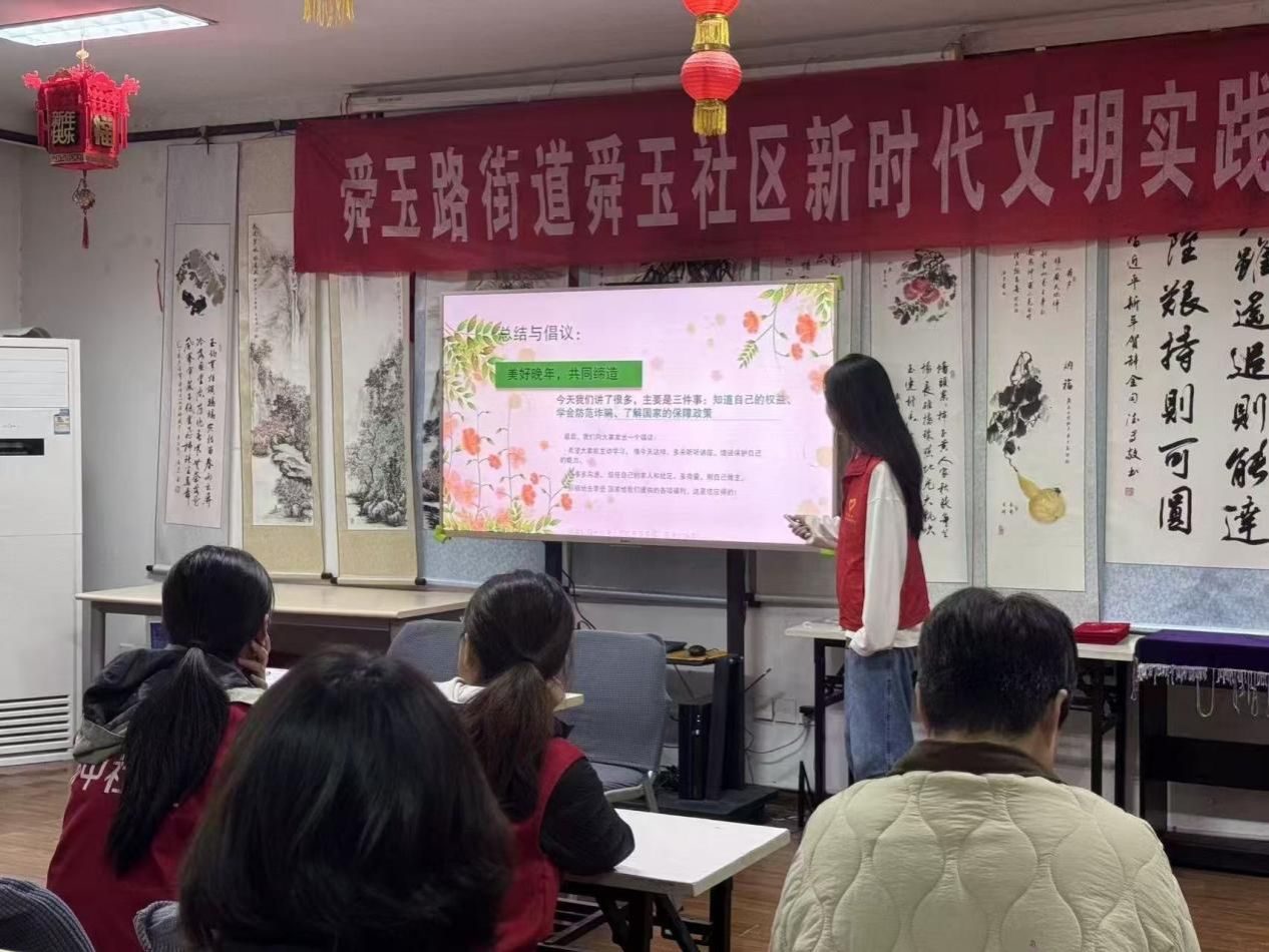 伴你同行爱心社在舜玉社区开展“孝润齐鲁·法护银龄”宣讲活动,以青春力量助力老年普法行动。此次活动成功与舜玉社区签署“青春益动”大学生社会实践项目合作协议。