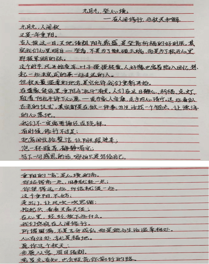 本次活动紧密结合文化与旅游学院的学科特色,将心理健康教育、情感表达训练与传统文化传承有机融合。学生可围绕“重阳·敬老·感恩·传承”主题,自主选择创作形式:书写现代诗文抒发对传统节日的感悟;撰写“一封家书”向长辈表达真挚情感;或结合长辈的口头禅设计专属表情包、贴纸,以轻松幽默的方式传递关爱。