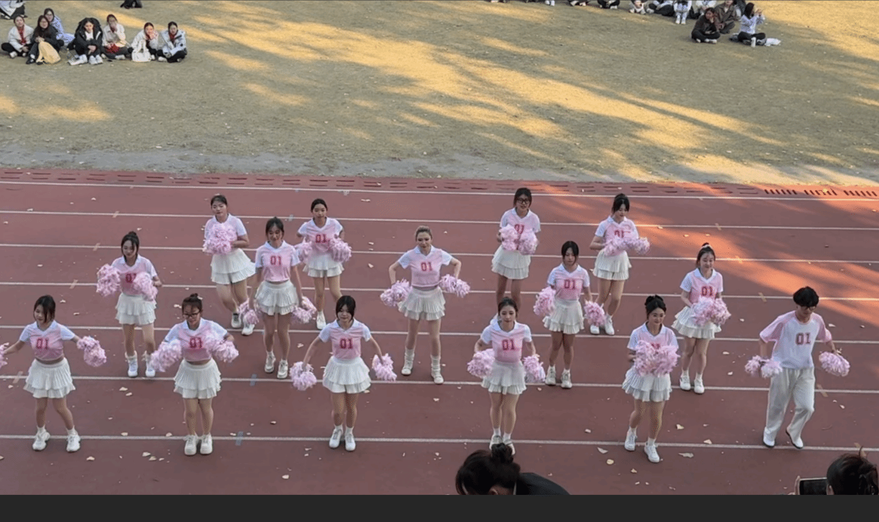 为备战此次大赛,学院从备赛初期便精准对标赛事规程,全力保障队伍训练质量。按照“每队10-20人、限报1支队伍”的参赛要求,学院通过自愿报名与专业筛选,组建起涵盖本院学习的参赛队伍,并特邀专业教练全程指导。从舞蹈的编排到音乐选择,从整体构思到动作推敲,都展现了队员们的智慧和创造力。训练过程中,团队严格遵循大赛“队形变化不少于五次”“下肢舞步性质不改变”等核心规则,团队紧扣《Ice Cream》的旋律特性,在前奏、间奏与结尾环节融入创意编舞,同时保留原曲目的基础舞步框架;服装选择上则兼顾气温与风格统一,确保整体造型得体且富有活力,全方位契合赛事规范。此外,队员们主动平衡学业与训练,利用课余时间反复打磨队形转换与肢体协调,力求每个八拍都精准到位,为比赛奠定坚实基础。