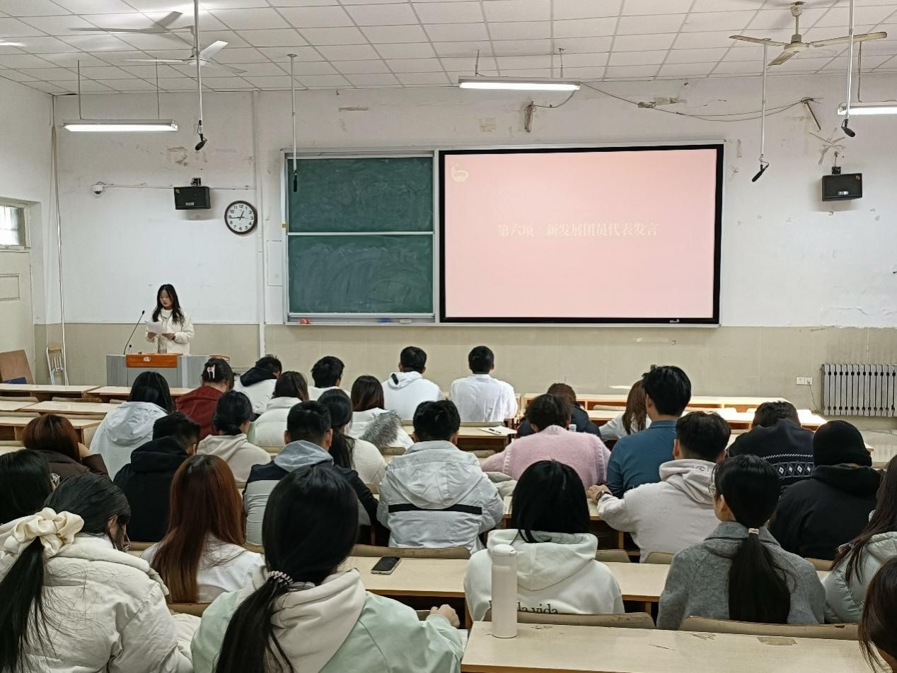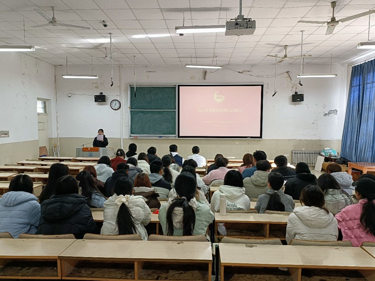 于文旅楼阶梯教室举办2025年下半年新发展团员入团仪式。学院团委书记赵军、新发展团员所属团支部全体委员及2025年下半年新发展团员参与本次仪式,仪式由学生会思政部部长司雪倩主持。
