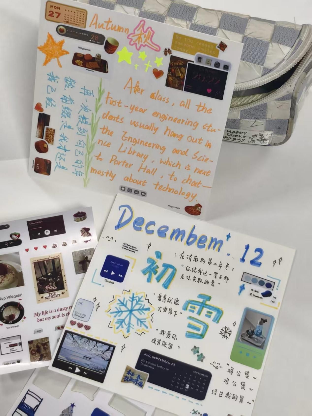 在最后的自由活动时间,同学们可根据兴趣选择拼图、手账创作、书写字帖等多种形式进行创意表达。通过动手实践,将学业与生活中的无形压力转化为有形的作品,在专注创作的过程中实现情绪的梳理与释放。