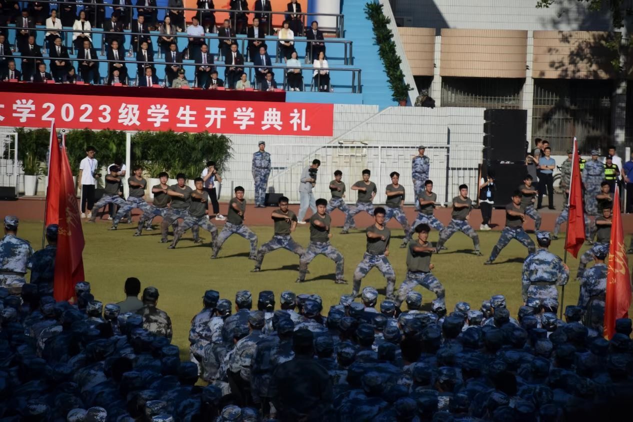 文旅男生们还选出代表参与了充满力量的军体拳。一击一打、一步一踏无不展现了士兵们的飒爽英姿。一声声的齐齐高喊的“杀”震人心魄。
