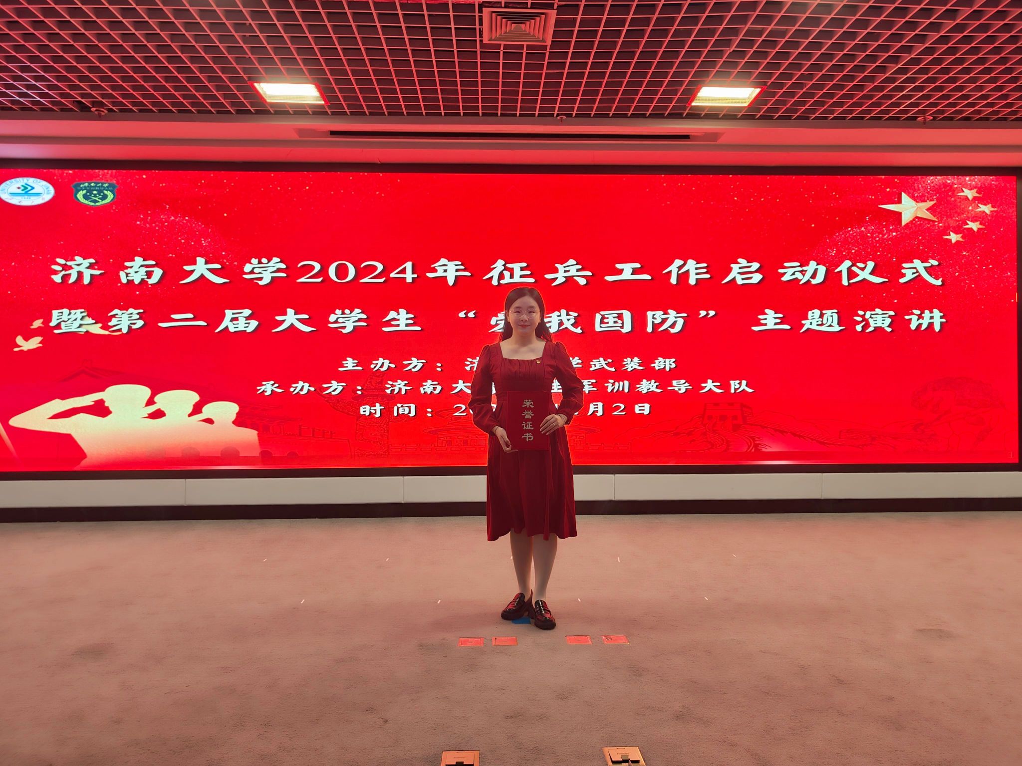 赛场上,牛家华同学结合亲身经历和自身感受围绕“爱我国防”主题,用真实的情感、质朴的语言多个层面讲述了自己对国防和军队的理解和看法,多个维度展现了新时代中国梦、强军梦的磅礴力量,充分展示了新时代大学生积极正面、健康向上的形象和风采,宣扬了年轻人的拳拳爱国之心和积极参与国防宣传的决心与活力。出色的表现打动了现场评审专家,赢得了观众的热烈掌声。