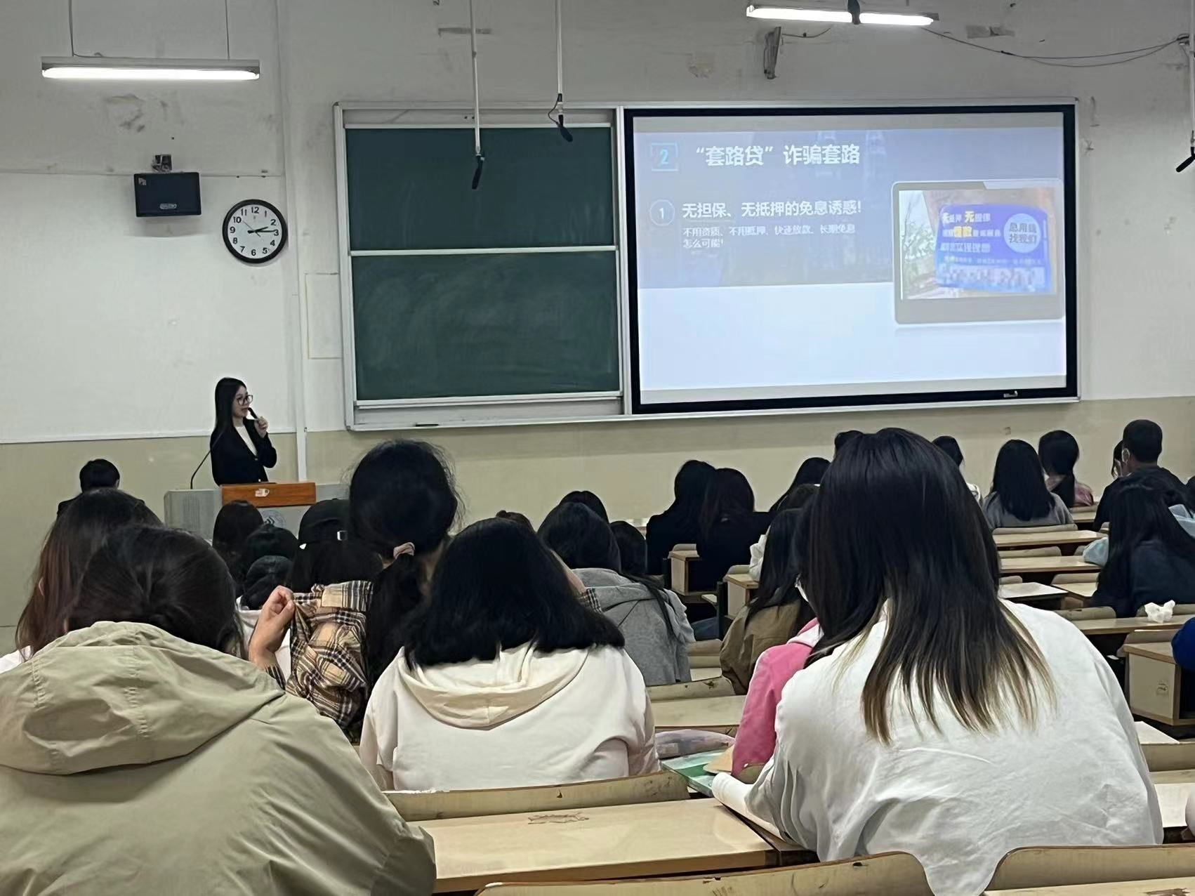 宣讲会上,银行专员以实际案例为切入点,详细讲解了兼职刷单、冒充熟人、网络贷款等常见骗局的运作机制,立足学生群体金融需求,逐一对常见金融服务进行了深入浅出、耐心专业的讲解分析,同时,就如何保护个人信息安全、识别金融诈骗等方面也进行了详细的说明和指导。