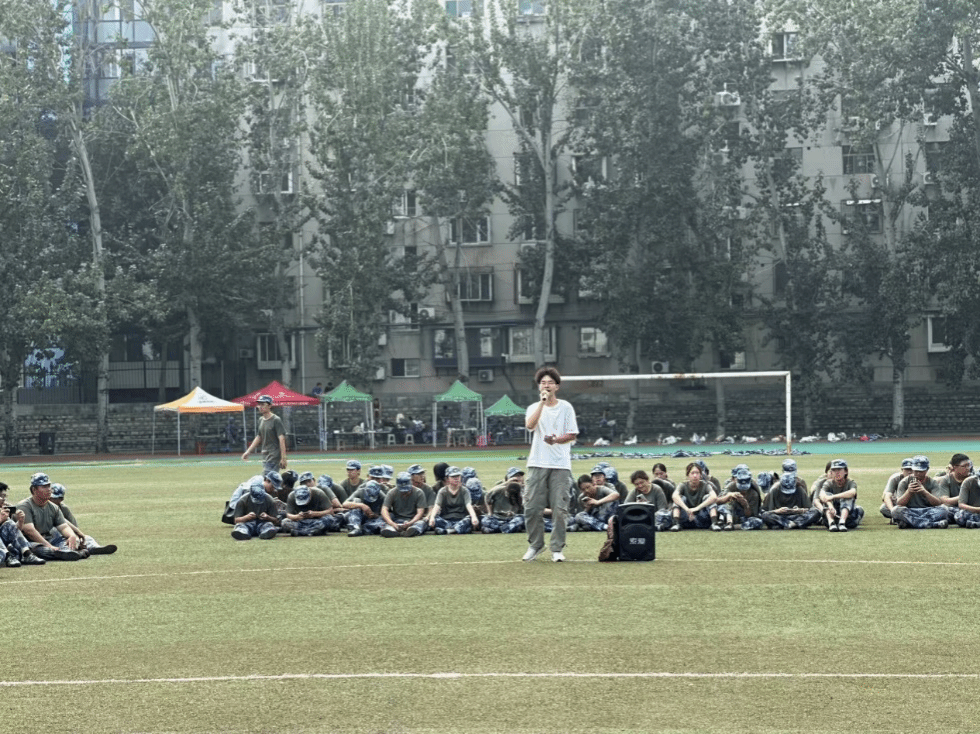 本次“军训送”活动在耿赫阳同学的主持下拉开帷幕。军训场上,表演人员们以歌传情,精心筹备“军训送”演出,悠扬的歌声和欢快的旋律驱散了新生们训练的疲惫。