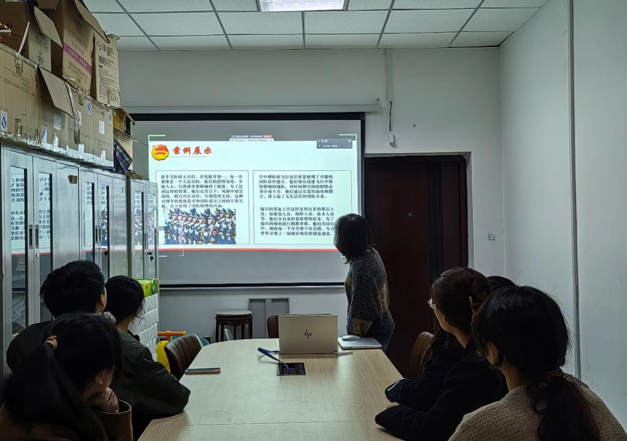 本次培训由武欣欣同学主持,她就团队精神的重要性展开了讲述,强调了团队精神在学习、工作中的核心地位。从建立良好沟通、培养相互信任、促进协作合作、提升团队凝聚力几个方面更进一步地阐述了如何培养团队精神。课堂中,对如何进一步提升团队精神展开了热烈的讨论。武欣欣还以部队中军人之间的互帮互助为例,阐释了塑造卓越团队精神的重要性。大家积极发言,提出了诸如增加团队建设活动、优化沟通渠道、建立更加完善的协作机制等一系列建设性意见。