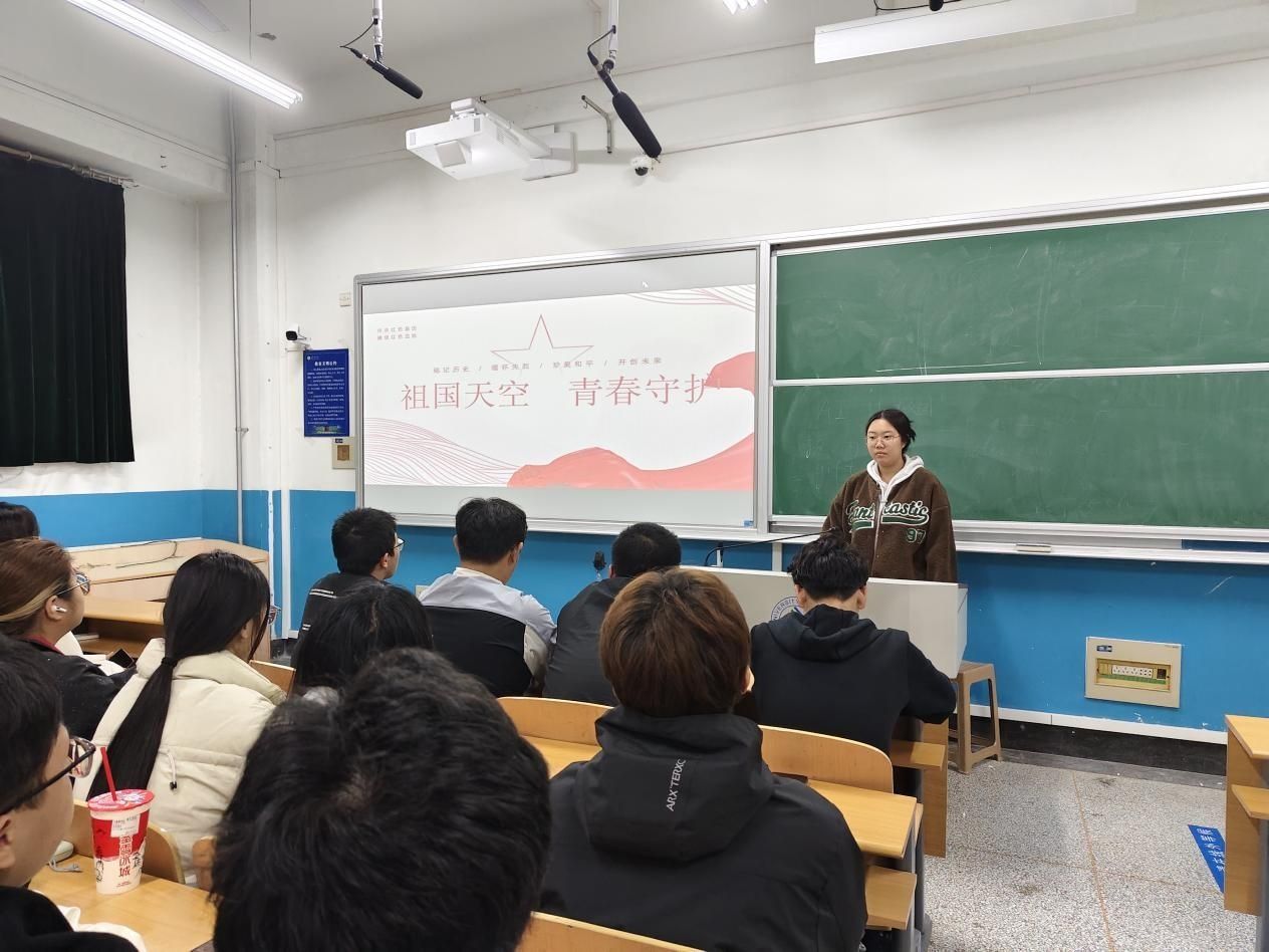 文管2403班团支部在舜耕校区D2J210教室开展“祖国天空,青春守护”主题宣讲活动。班级全体团员参与此次活动。
