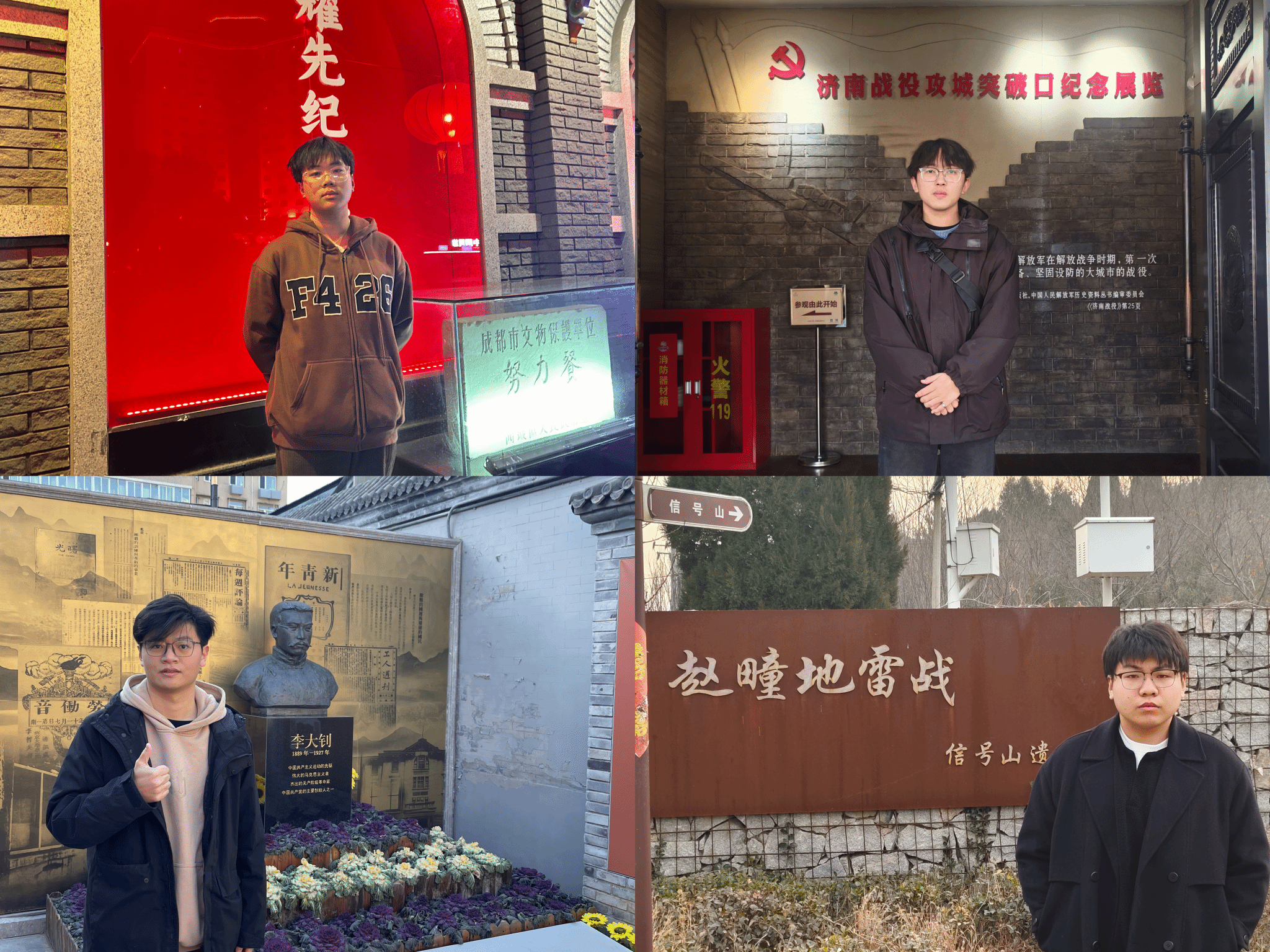 学子组成的“寻迹天下”红色先锋队,以脚步丈量革命热土,用热忱触摸历史脉搏。2025年1月12日至2月22日,由文管2403胡展豪、文管2403胡潇涵、文管2403郭尚儒、旅管23H3曹罡毓组成的4人团队跨越川京两地,深入建川博物馆、卢沟桥抗战纪念馆、李大钊故居等红色地标,以“专业赋能文化传承,青春对话百年信仰”为主线,展开了一场融历史寻访、学术调研、精神传承于一体的红色文化探索之旅。