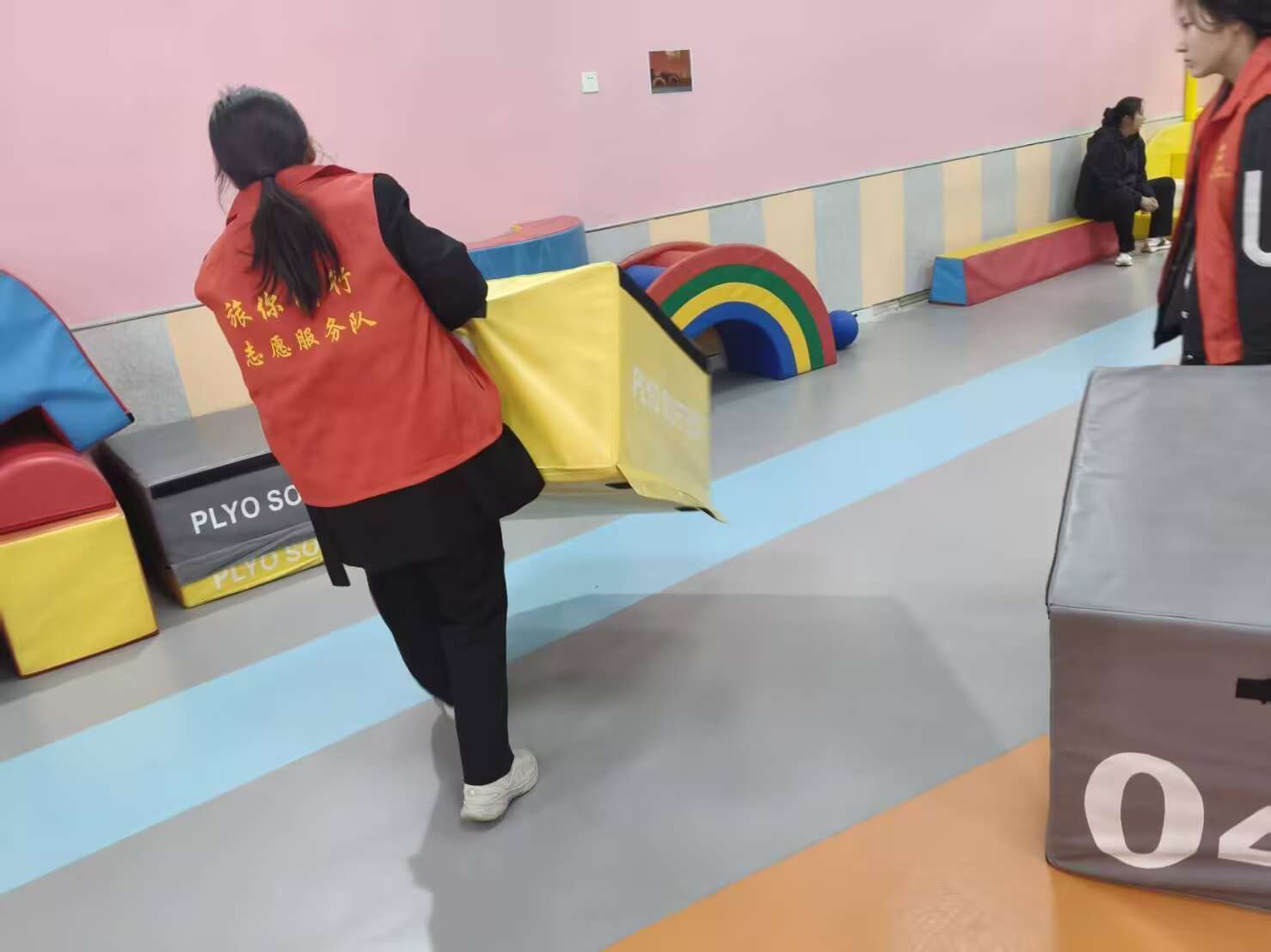 为给孩子们营造整洁、安全、有序的成长与活动环境,志愿者们主动承担起康复中心的清洁整理工作,分工协作、高效联动。他们细致擦拭桌椅橱柜、认真清扫地面角落、彻底清洗餐具器皿,将卫生清洁落到实处;同时,针对康复活动室的各类训练道具、玩具器材,志愿者们逐一分类、归纳整理,按照使用频率与功能属性有序摆放,确保道具取用便捷、场地整洁规范。汗水浸湿衣衫,却丝毫未减服务热情,志愿者们用双手打造洁净家园,用行动筑牢健康防线,让爱心与责任体现在每一处细节之中。