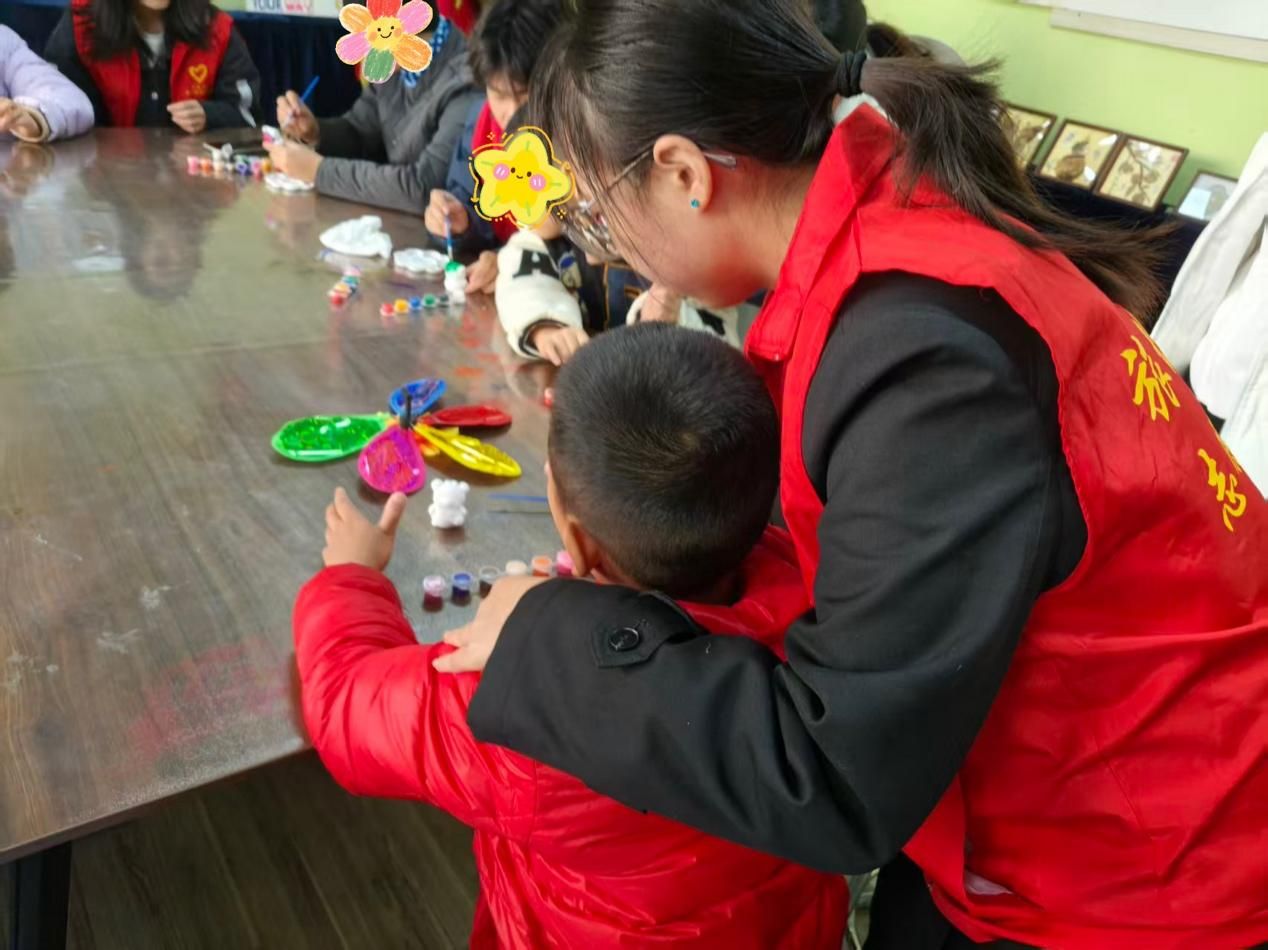 活动中,志愿者们化身耐心的“引导者”,与孤独症儿童围坐一堂,共赴一场石膏娃娃的创意美学之约。志愿者们俯身倾听,耐心引导,手把手教孩子们握笔、调色,从淡雅底色到灵动纹路,从色彩搭配到细节勾勒,每一个动作都轻柔细致,每一句鼓励都温暖入心。孩子们的小手在陪伴中渐渐舒展,原本素净的石膏娃娃,在他们的笔下褪去单调,被赋予鲜活色彩与独特创意。这不仅是一场艺术创作,更是一次专注力、动手力与审美力的悄然滋养,让孩子们在色彩的世界里收获自信,在创作的乐趣中感受温暖。