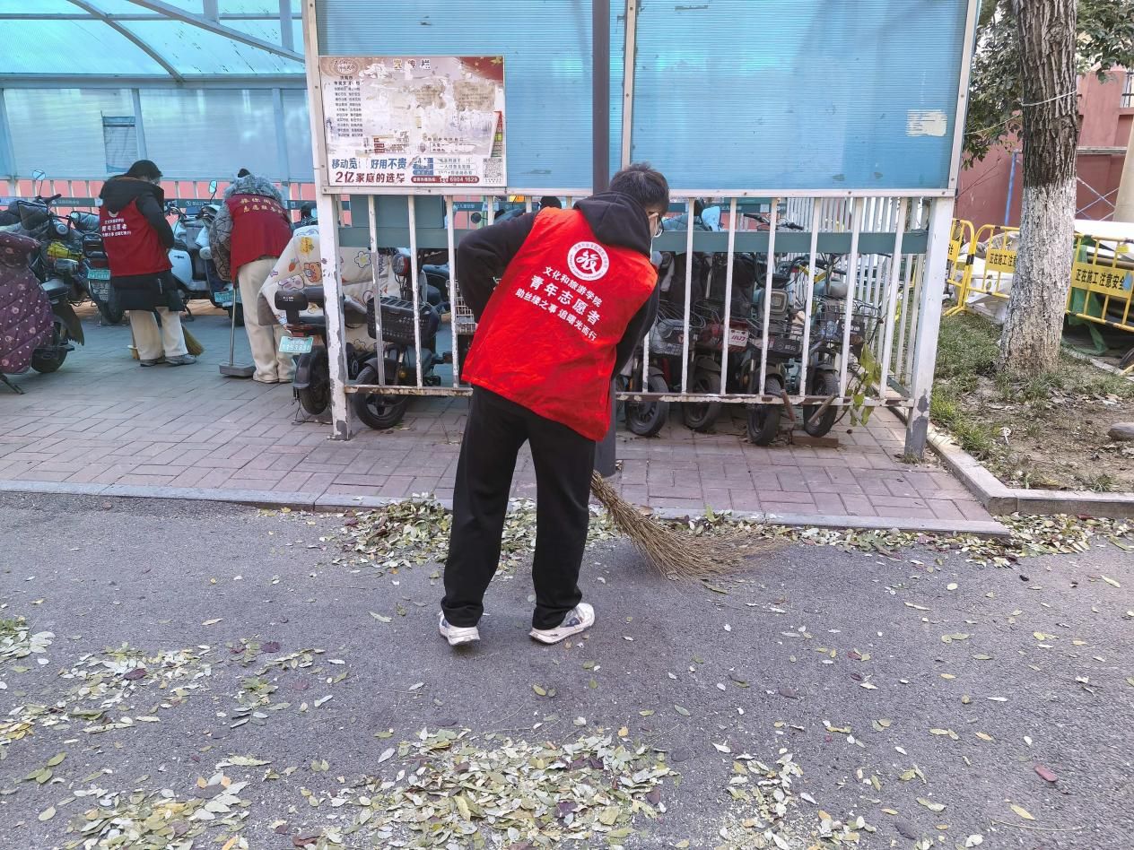 活动现场,志愿者们在社区工作人员的指导下迅速分工、各司其职。在社区车棚区域,志愿者们规范整理车辆停放秩序,细致清扫地面散落的杂物与积存的灰尘,擦拭车棚立柱与设施表面污渍,让原本略显杂乱的车棚变得整洁有序,为居民停车提供了便利。