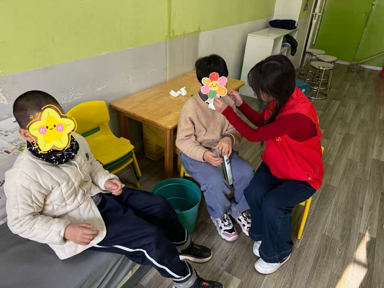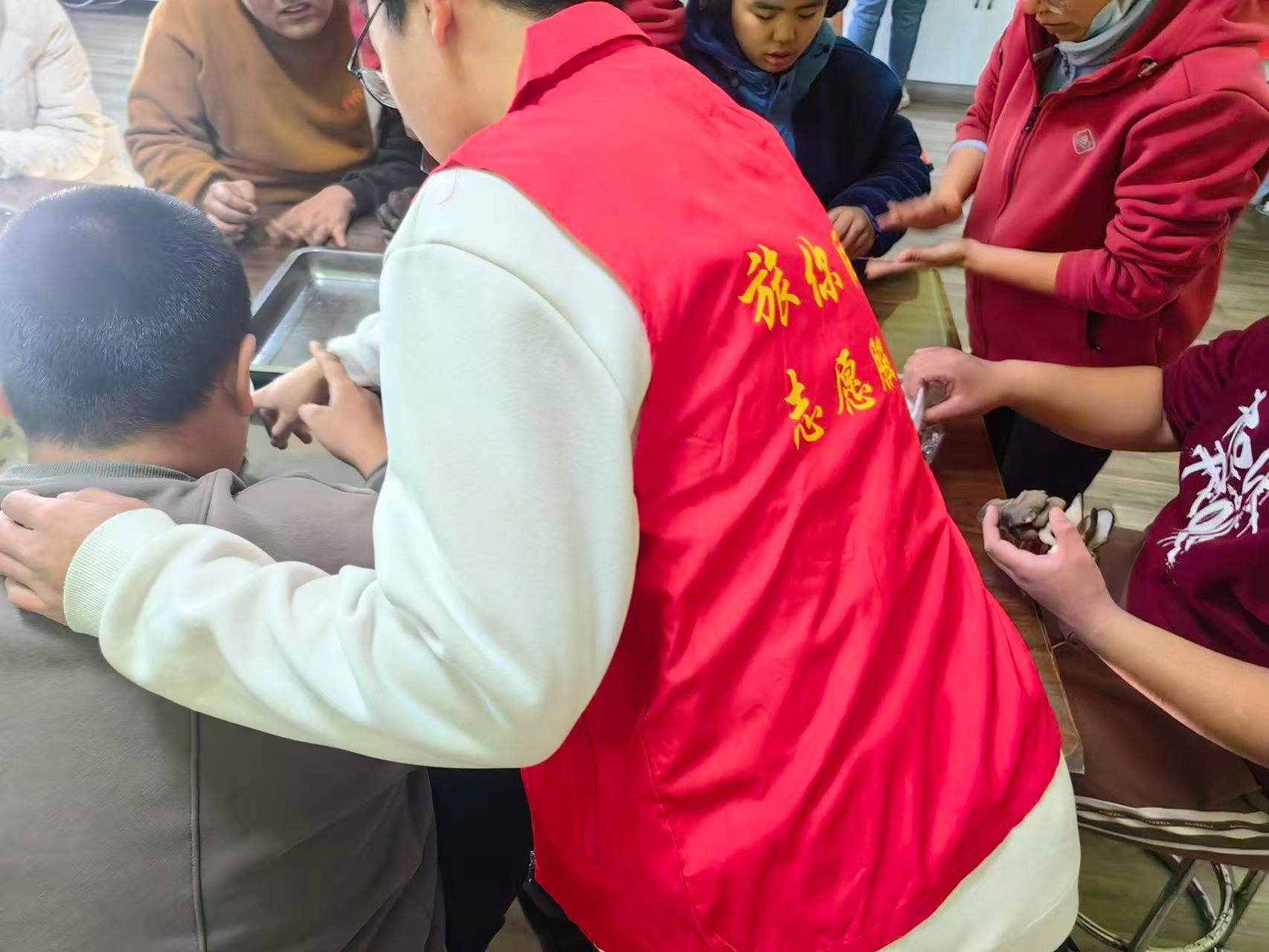 活动中,一幕幕暖心画面不断上演。志愿者们时刻关注着孩子们的状态,细心地为孩子们擦拭口水,温柔地与他们聊天互动,倾听孩子们的心声,分享有趣的故事。在轻松愉快的交流中,孩子们脸上洋溢着纯真的笑容,与志愿者们建立起深厚的情谊,整个活动室充满了欢声笑语,暖意融融。